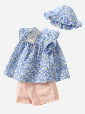 Step into summer style with our Blue Square Neck Short Sleeves Pure Cotton Top & Shorts Set. Perfect for beach days or leisurely outings, it offers a comfortable fit and a chic look.