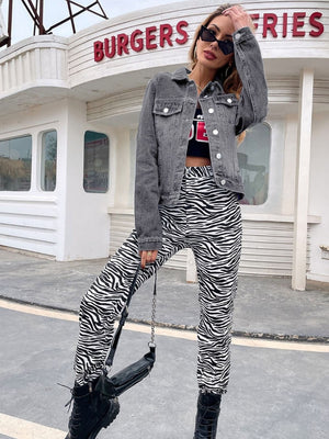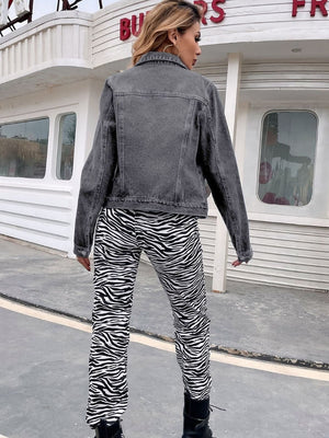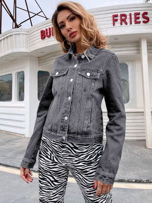 Blue Stand Collar Solid Long Sleeves Cotton Jacket