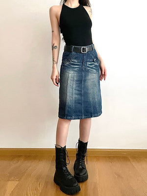 Introducing our Blue Straight Knee Length Casual Cotton Solid Skirt, a versatile addition to your wardrobe that effortlessly combines style and comfort.