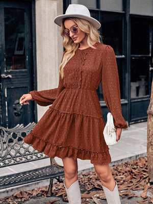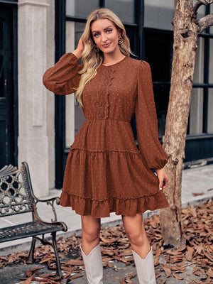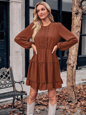 Brown A-Line Polyester Dress