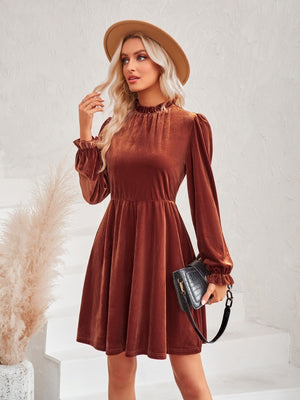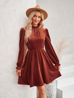Brown A-Line Polyester Round Neck Dress