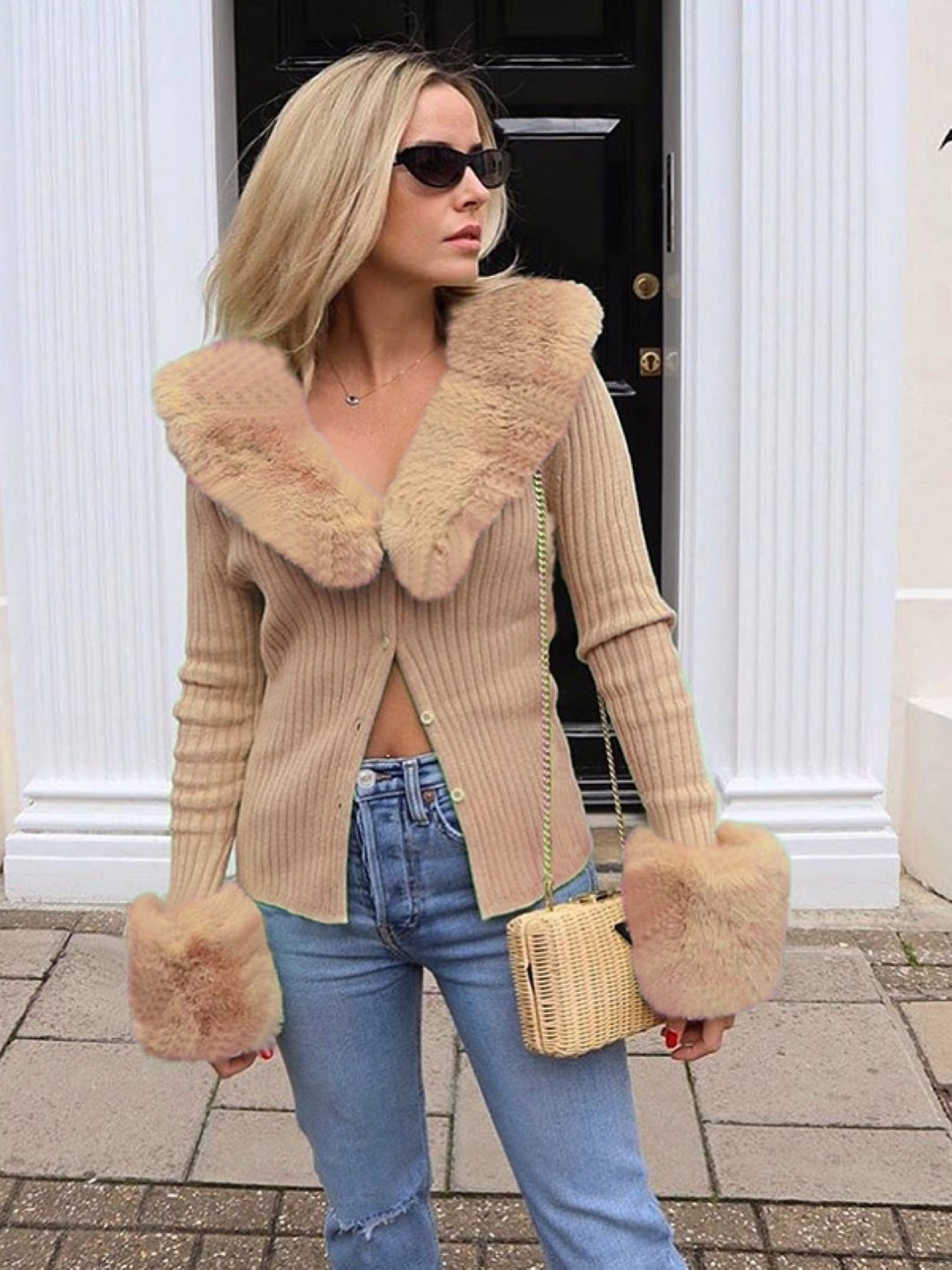 Brown Lapel Collar Long Sleeves Solid Polyester Regular Open Front Jacket