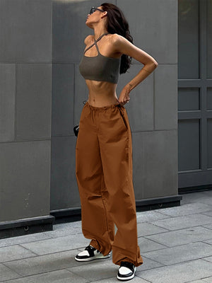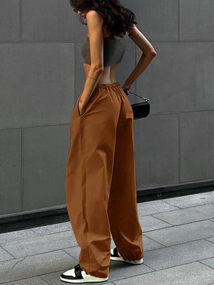 Add a touch of sophistication to your outfit with these brown loose fit polyester trousers, perfect for any occasion.