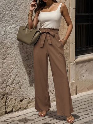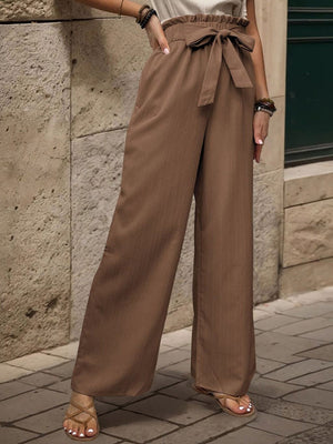 Brown Loose Fit Solid Polyester Trouser