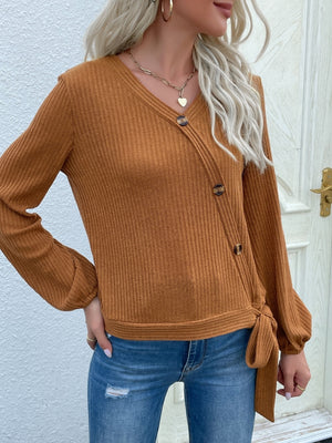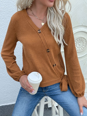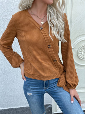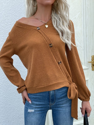 Brown One Shoulder Solid Long Sleeves Polyester Top