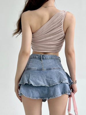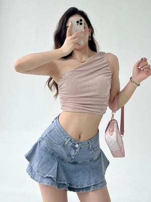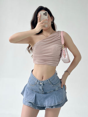 Introducing our Brown One Shoulder Solid Sleeveless Polyester Casual Top, a stylish and versatile addition to your wardrobe. Made from high-quality polyester fabric, this top offers a comfortable and breathable fit. The one shoulder design adds a touch of elegance, while the black color provides a timeless and sophisticated look.