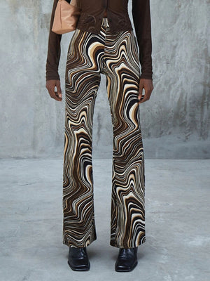 Brown Printed Regular Fit Polyester Trouser