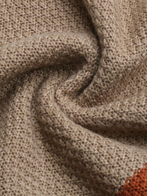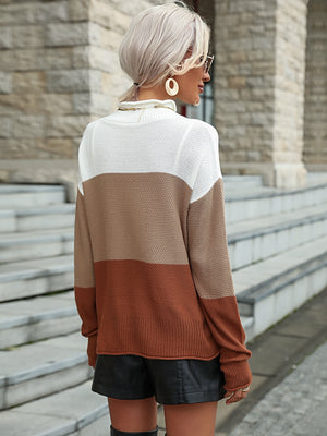 Brown Round Neck Colourblocked Long Sleeves Polyester Sweater