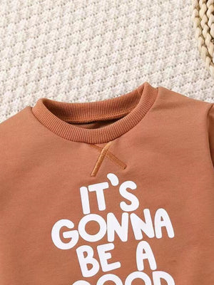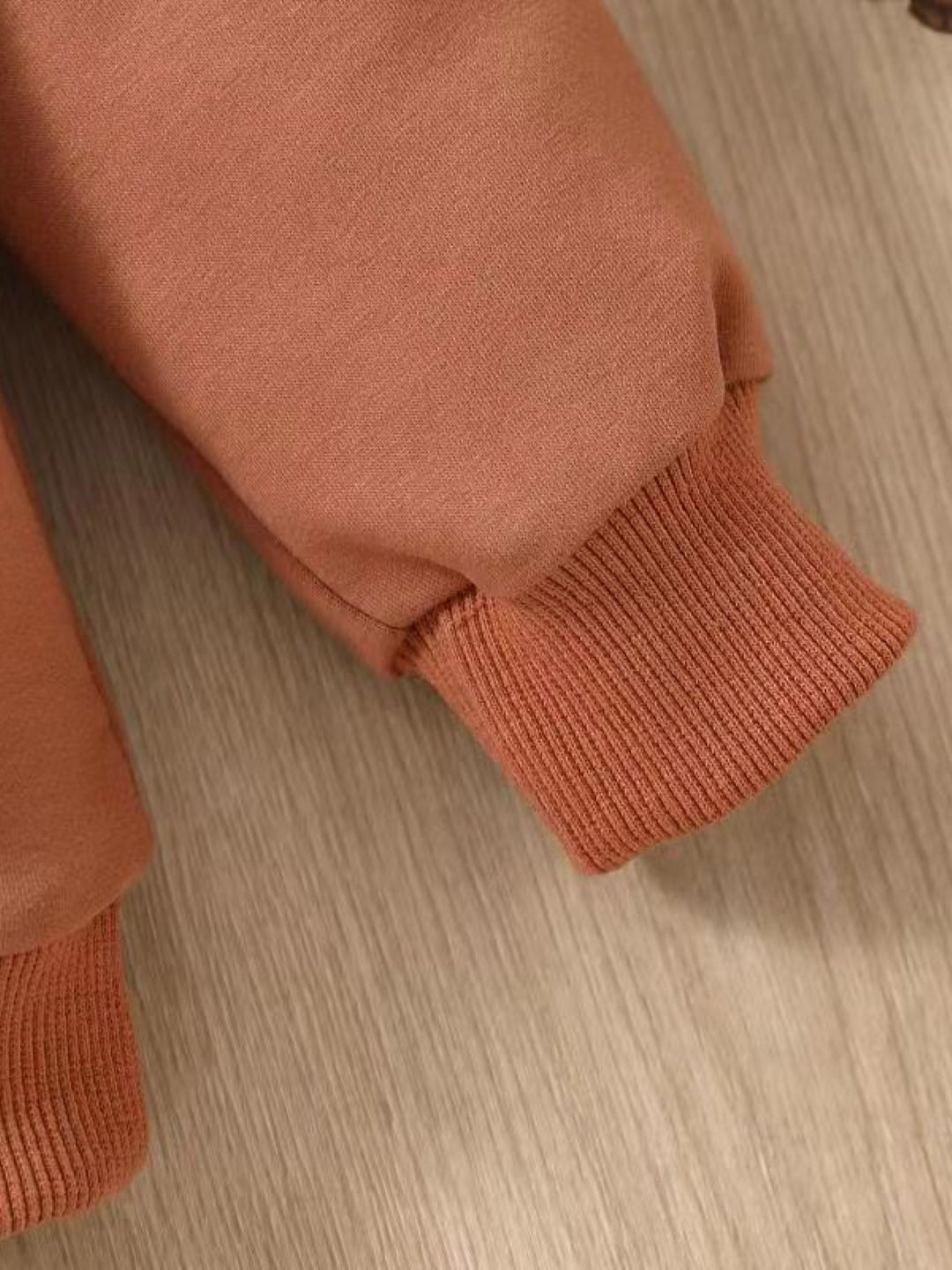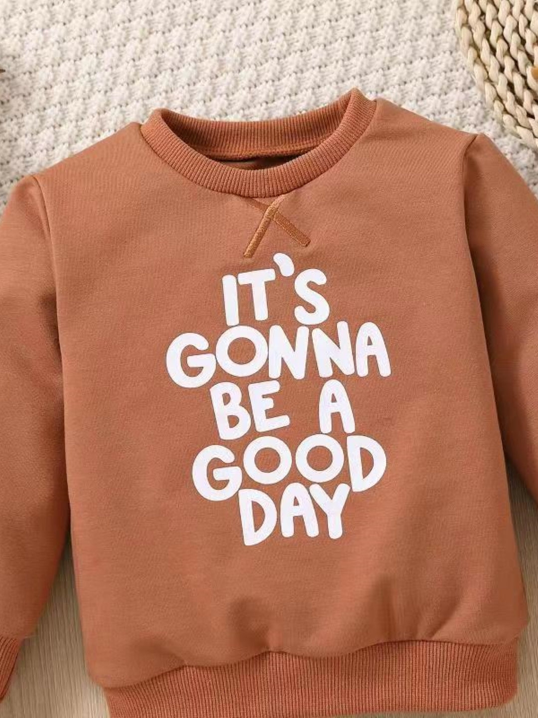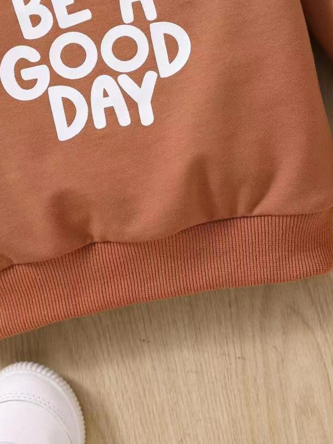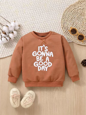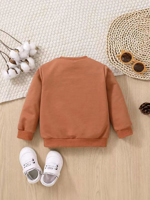 Brown Round Neck Long Sleeves Typography Pullover Polyester Sweatshirt