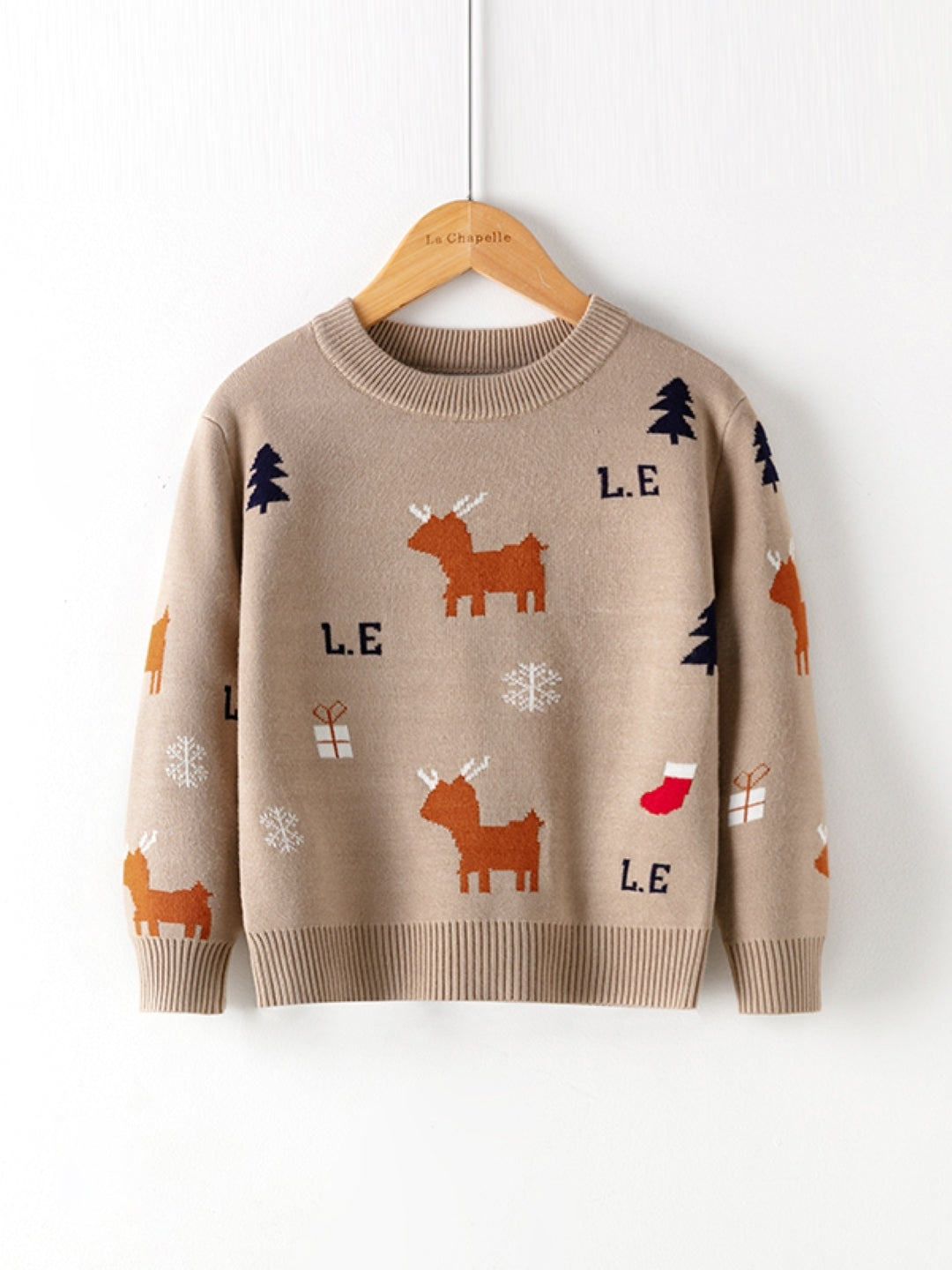 Brown Round Neck Printed Long Sleeves Casual Pullover Viscose Rayon Sweater