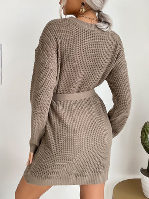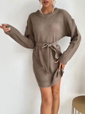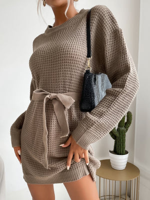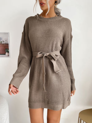 Brown Round Neck Solid Long Sleeves Polyester Sweater