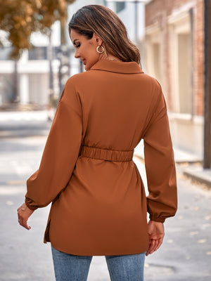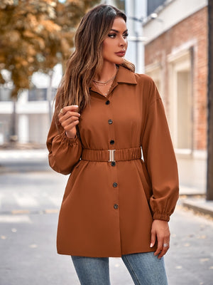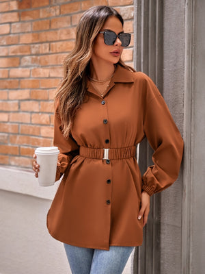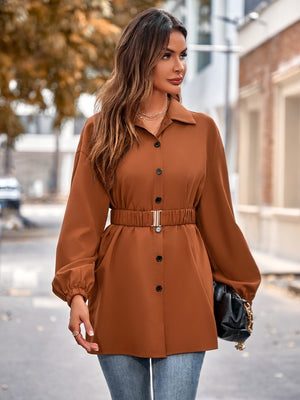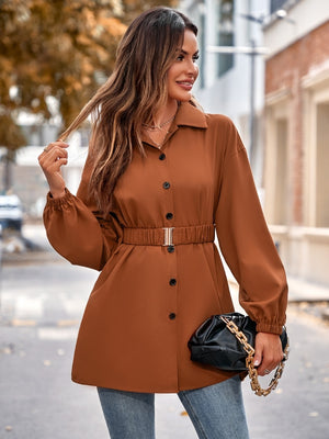 Introducing our Brown Shirt Collar Long Sleeve Polyester Top, a stylish and versatile addition to your wardrobe. Made from high-quality polyester fabric, this top offers a comfortable and breathable fit. The shirt collar design adds a touch of elegance, while the black color provides a timeless and sophisticated look.