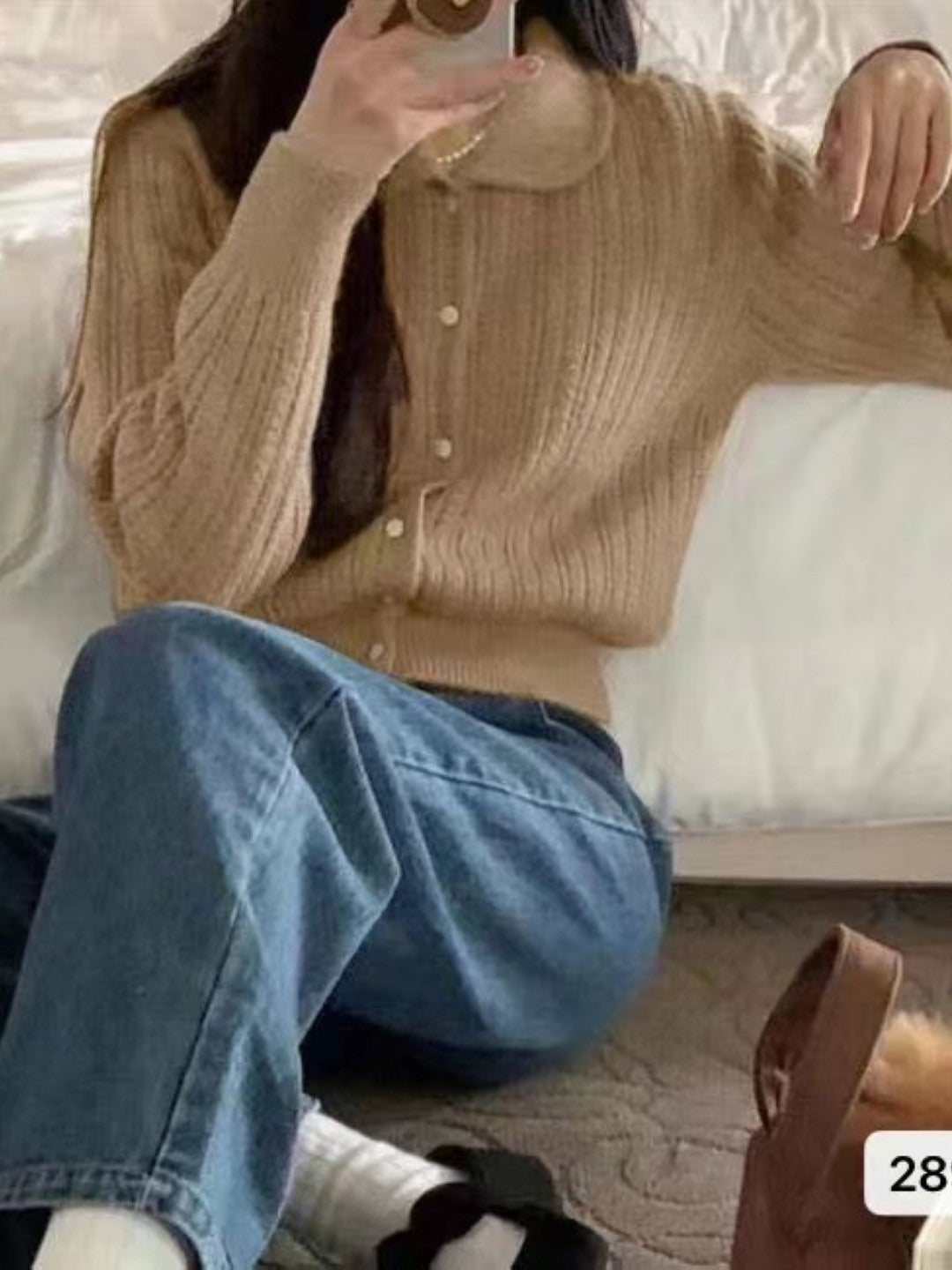 Brown Shirt Collar Long Sleeves Solid Regular Sleeves Acrylic Top