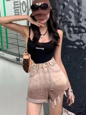 Brown Solid Regular Fit Above Knee Denim Shorts