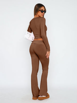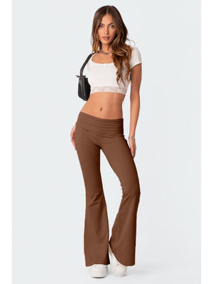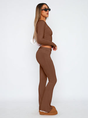 Brown Solid Regular Fit Casual Polyester Regular Trousers
