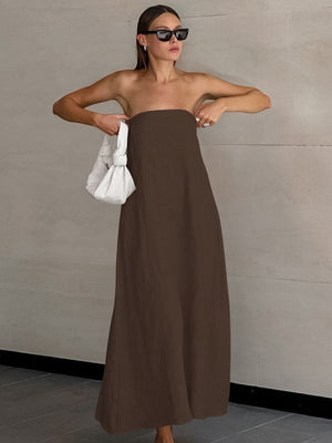 Brown Strapless Maxi Dress