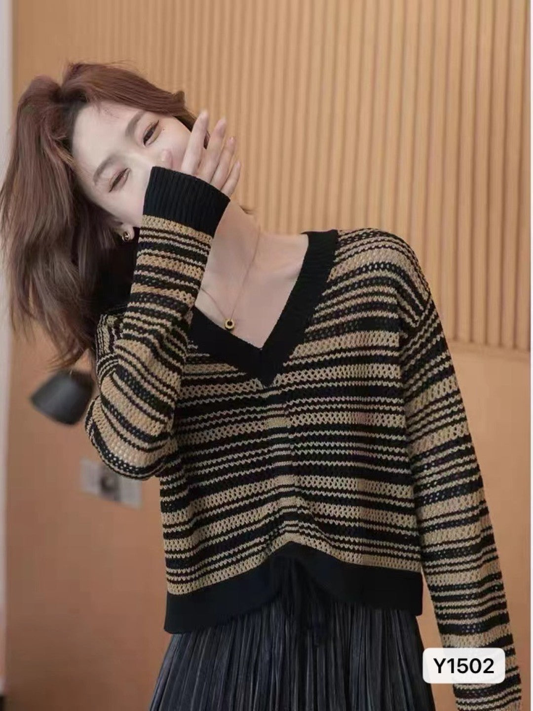 Introducing our Brown V-Neck Long Sleeves Horizontal Stripes Regular Sleeves Viscose Rayon Top, a stylish and versatile addition to your wardrobe. Made from high-quality viscose rayon fabric, this top offers a comfortable and breathable fit. The v-neck design adds a touch of elegance, while the black color provides a timeless and sophisticated look.