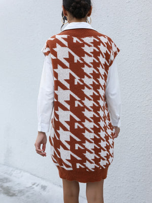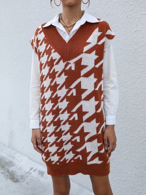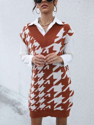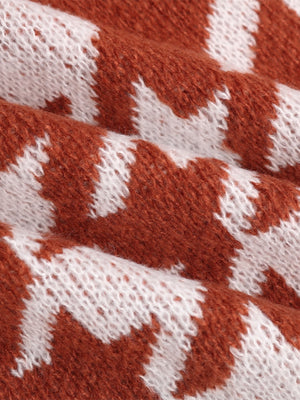 Brown V-Neck Printed Long Sleeves Polyester Sweater