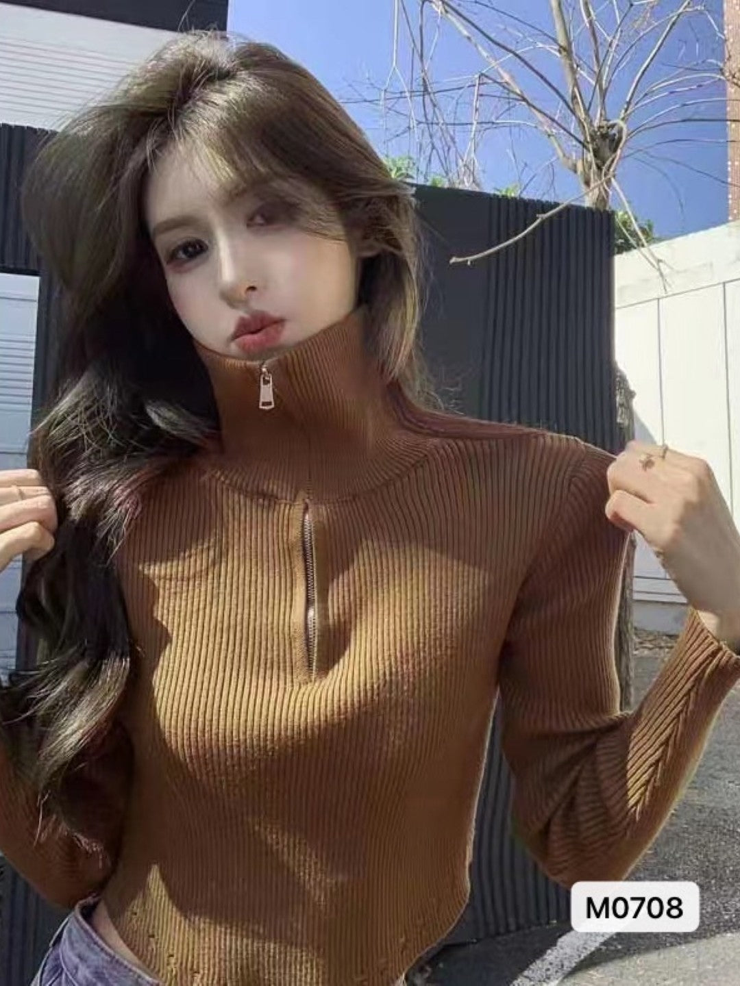 Brown Viscose Rayon Round Neck Long Sleeves Solid Top