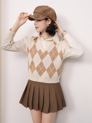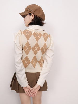 Brown Viscose Rayon Shirt Collar Long Sleeves Checked Top