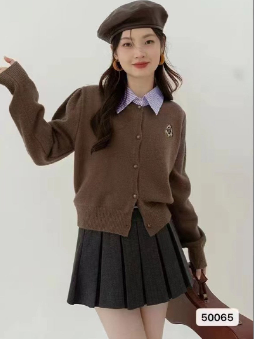 Brown Viscose Rayon Shirt Collar Long Sleeves Solid Top
