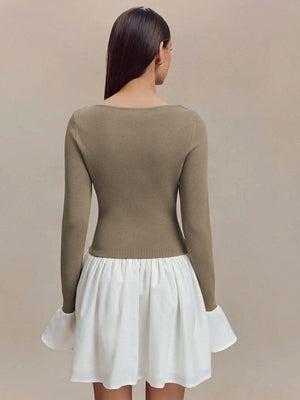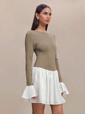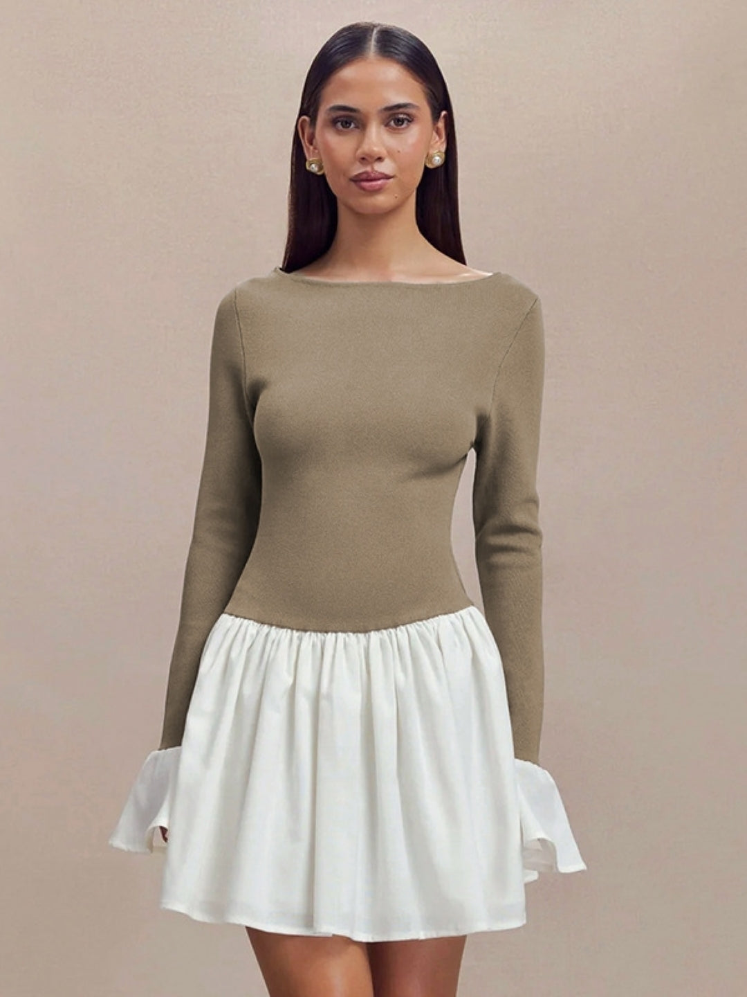 Refresh your wardrobe with this chic brown & white flare sleeve mini dress. Featuring a fitted brown bodice, stylish flared white cuffs, and a flowy white skirt, this dress blends elegance with a playful twist. Perfect for brunch, parties, or casual outings, its flattering silhouette makes it a versatile choice. Pair with heels or boots for an effortlessly classy look.