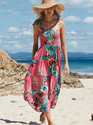 Embrace your feminine side and turn heads with our burgundy square neck a-line floral sleeveless maxi polyester dress. Crafted from high-quality polyester, this dress offers a comfortable and lightweight feel, perfect for any occasion.