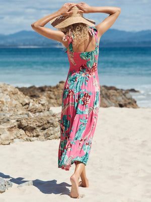 Burgundy Square Neck A-Line Floral Sleeveless Maxi Polyester Dress