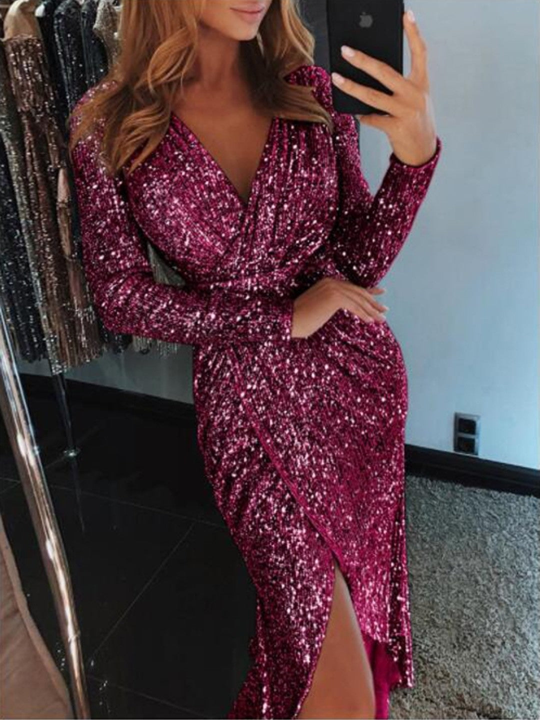 This Burgundy V-Neck Bodycon Long Sleeves Solid Maxi Polyester Dress is ideal for any special event. The elegant design and bodycon fit highlight your curves, with the details adding a touch of allure. Crafted from high-quality polyester fabric, this dress is both comfortable and chic.