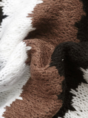 Coffee Brown V-Neck Colourblocked Long Sleeves Acrylic Cardigan