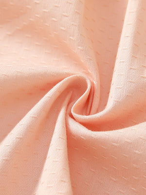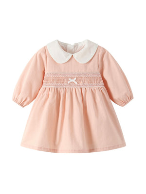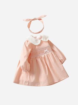 Cream A-Line Round Neck Solid Long Sleeves Cotton Dress