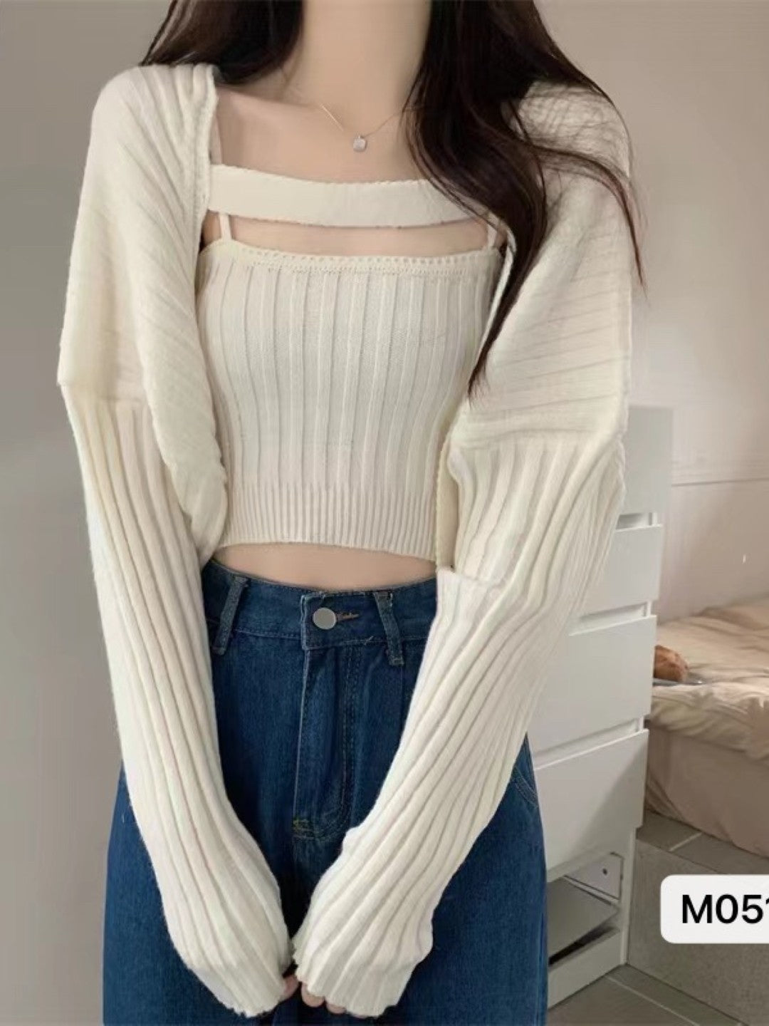 Introducing our Cream Acrylic Shoulder Straps Long Sleeves Solid Top, a stylish and versatile addition to your wardrobe. Made from high-quality acrylic fabric, this top offers a comfortable and breathable fit. The shoulder straps design adds a touch of elegance, while the black color provides a timeless and sophisticated look.
