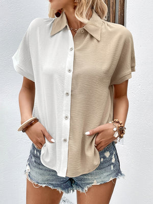 Introducing our Cream & Brown Polyester Shirt Style Top, a stylish and versatile addition to your wardrobe. Made from high-quality polyester fabric, this top offers a comfortable and breathable fit. The shirt collar design adds a touch of elegance, while the black color provides a timeless and sophisticated look.