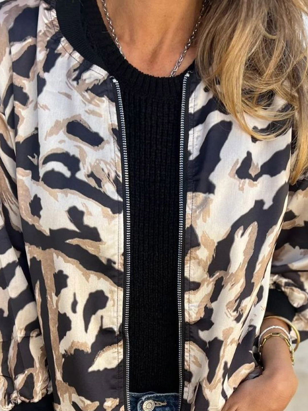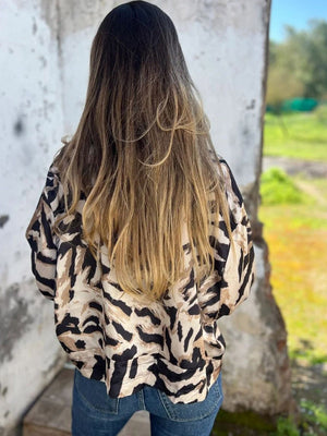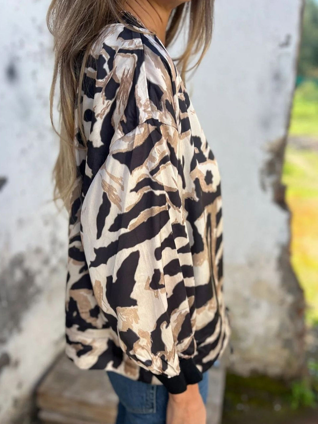Cream Collarless Long Sleeves Printed Polyester NA