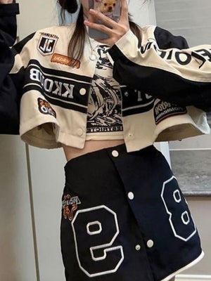 Cream Collarless Long Sleeves Typography Polyester Open Front Jacket
