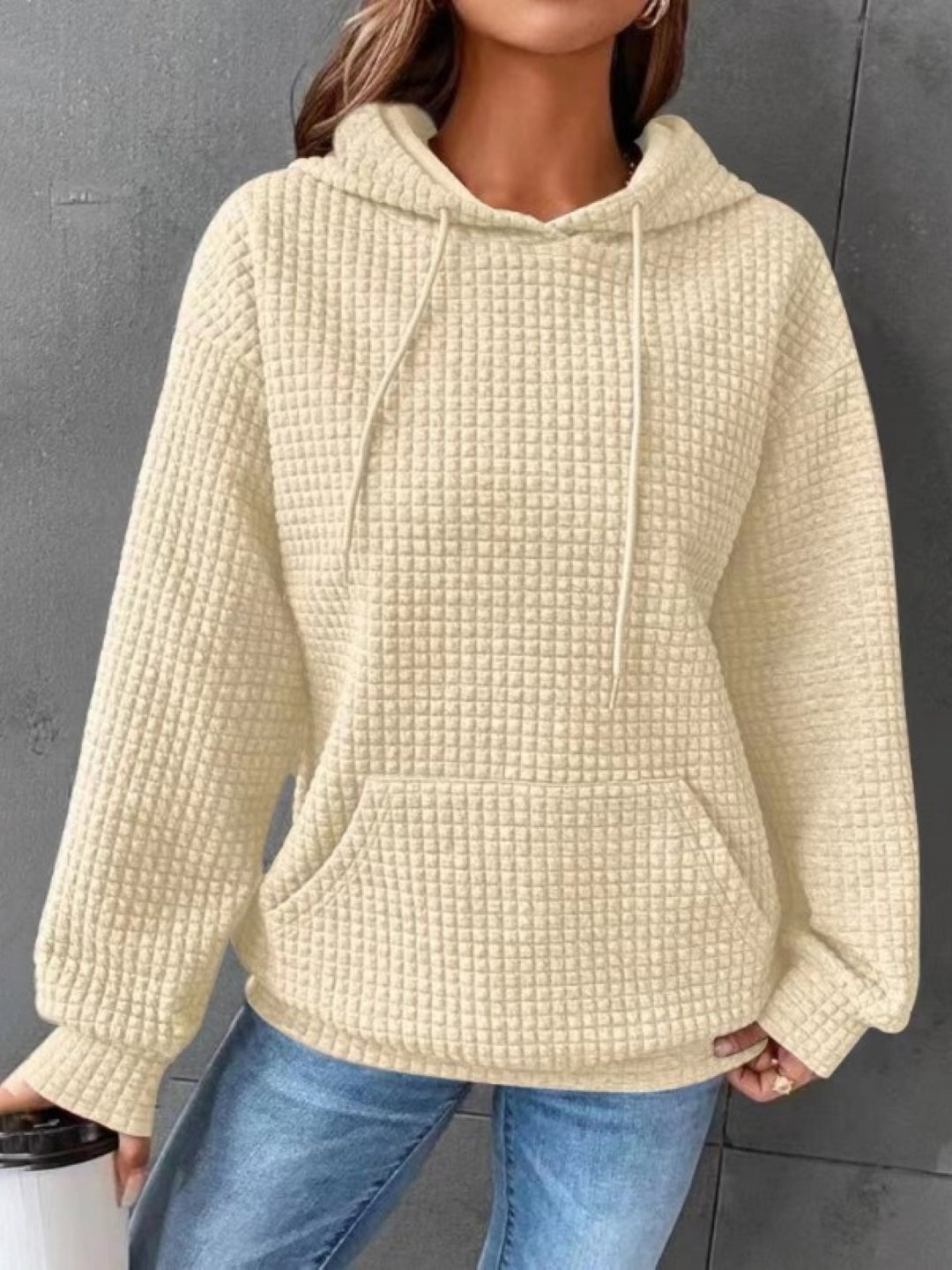Cream Hood Long Sleeves Solid Pullover Polyester Hoodie