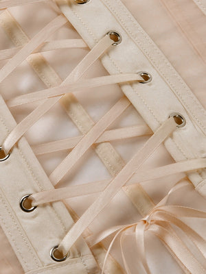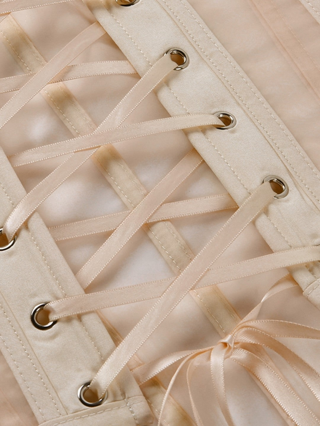 Cream Off Shoulder Solid Sleeveless Corset Polyester Top