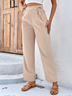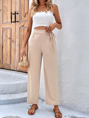 Embrace a sophisticated look with these cream polyester trousers, crafted for a refined appearance.