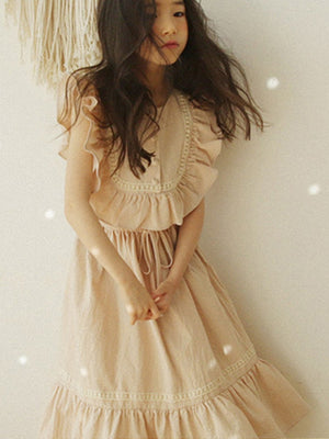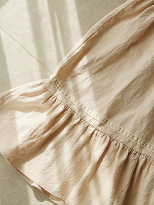 Cream Round Neck Casual A-Line Solid Cotton Knee Length Dresses