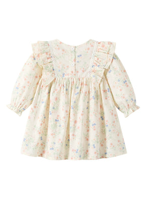 Cream Round Neck Casual A-Line Stars Long Sleeves Knee Length Cotton Dress