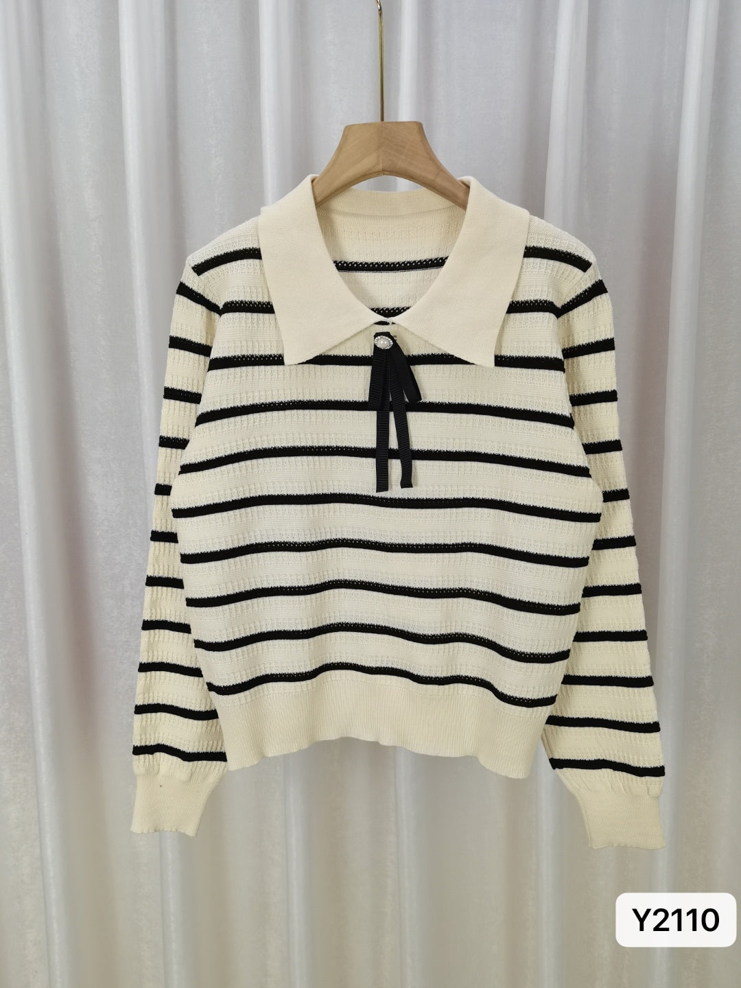 Cream Round Neck Long Sleeves Horizontal Stripes Regular Sleeves Viscose Rayon Top