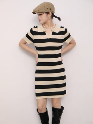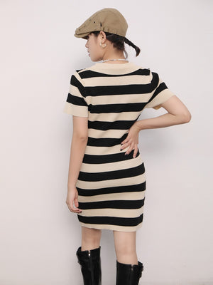 Cream Shirt Collar Short Sleeves Horizontal Stripes Top