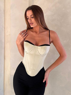 Cream Shoulder Straps Solid Sleeveless Viscose Top