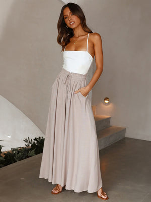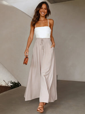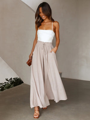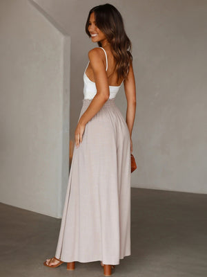 Cream Solid Wide Leg Elasticated Slip-On Palazzo