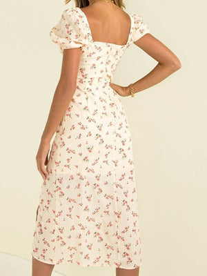 Cream Square Neck Bodycon Short Sleeves Floral Maxi Polyester Dress