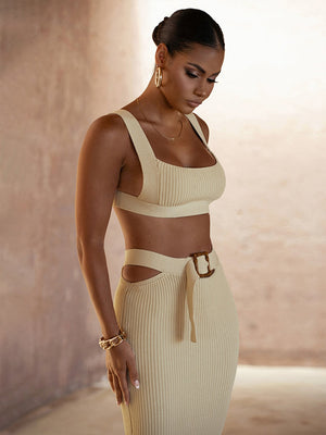 Embrace timeless elegance with our Cream Top & Skirt Clothing Set With Belt. Ideal for various events, it offers a chic cream color palette and includes a stylish belt to accentuate the waist.