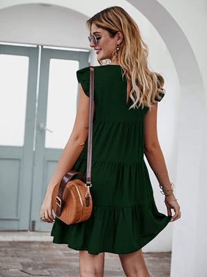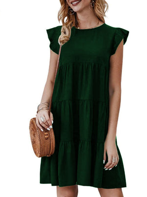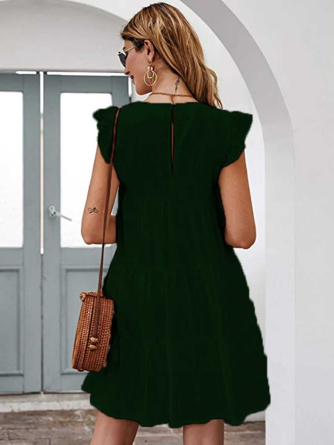Dark Green Round Neck A-Line Party Solid Sleeveless Above Knee Polyester Dress