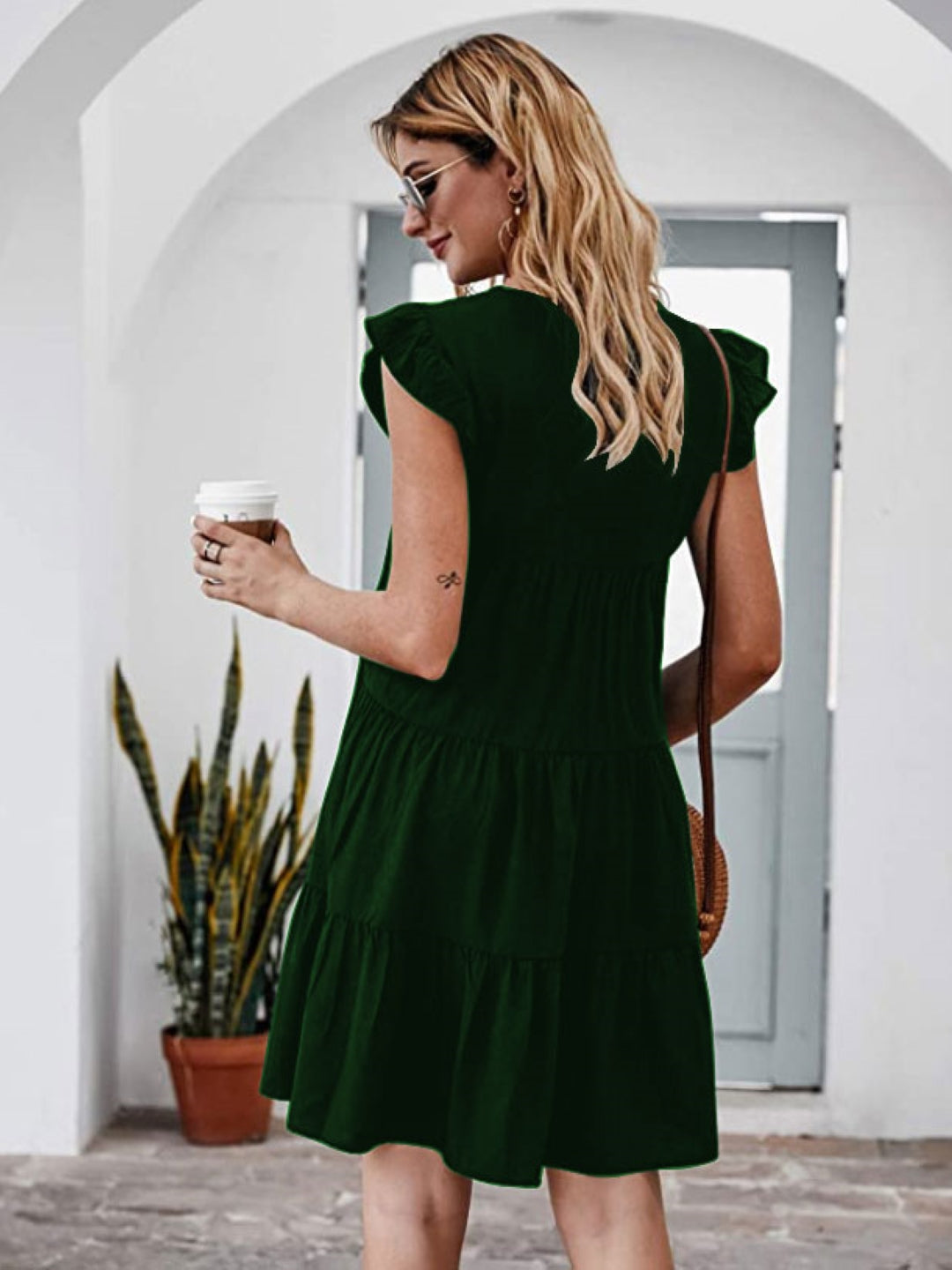 This elegant dark green round neck a-line party solid sleeveless above knee polyester dress features a flattering V-neckline and A-line silhouette, perfect for any party or special occasion. With sleeveless and an above knee length, this dress is a versatile and chic addition to any wardrobe.