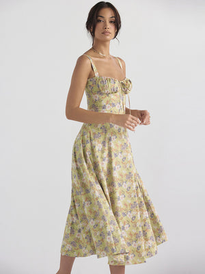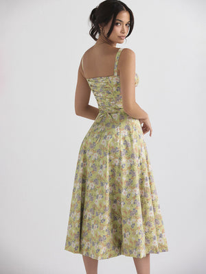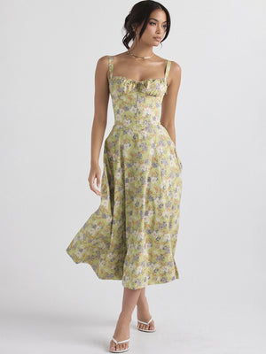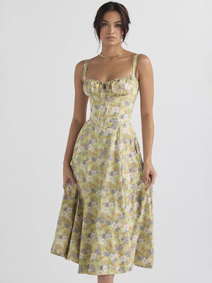 Dark Green Shoulder Straps A-Line Floral Sleeveless Maxi Polyester Dress