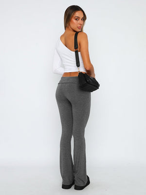Dark Grey Solid Regular Fit Casual Polyester Regular Trousers